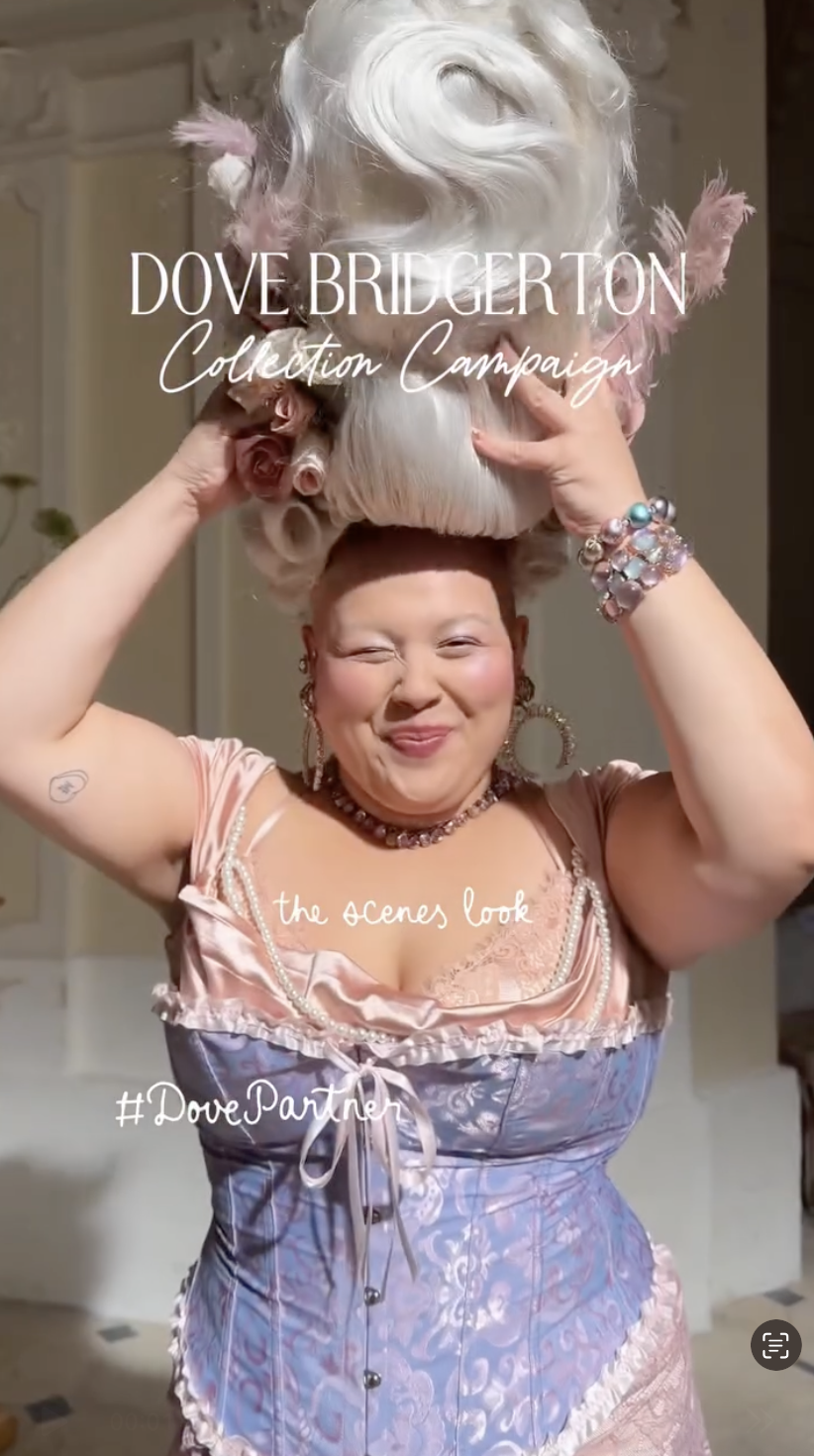 This campaign for Dove x Bridgerton celebrates real women who embrace their bodies and themselves no matter what anyone has to say about it.